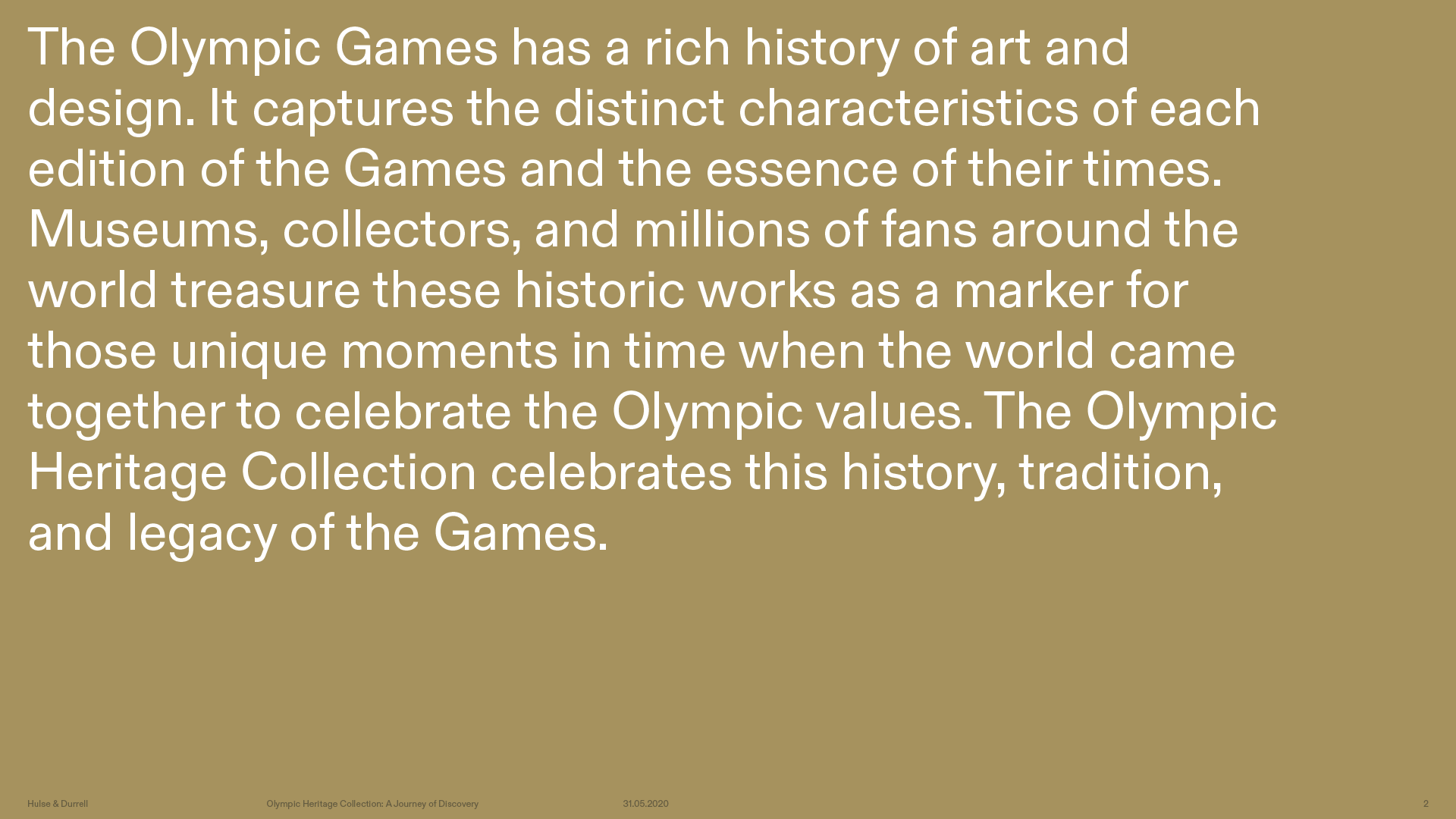 Lead designer for the Olympic Heritage Collection − a global program which curates iconic art and design of historic Olympic Games for international licensees. Work done under contract with Hulse&Durrell.