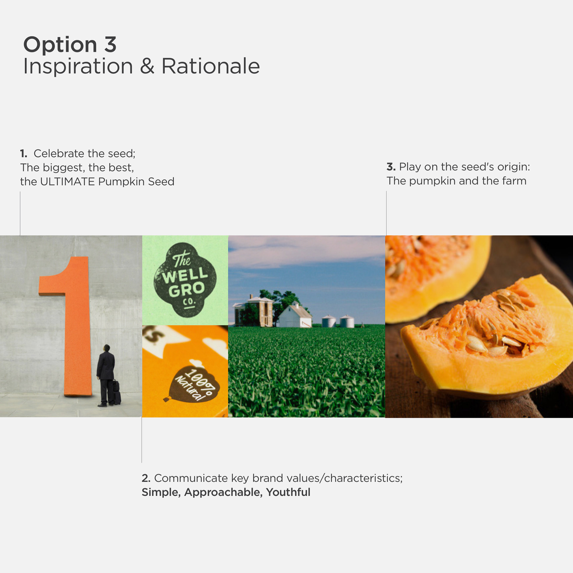The concept for the visual identity is rooted in the concept that Skuta seeds are the 'Ultimate Pumpkin Seed'. This idea is reinforced with the seed itself the hero of the brand. Nestled within the 'u' of the word Skuta, the logotype abstractly depicts the seed's origin.
